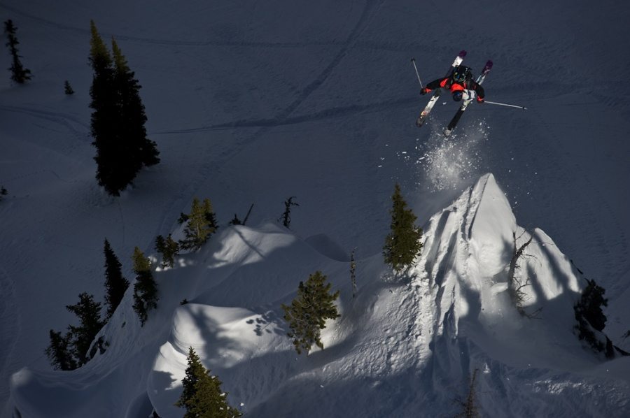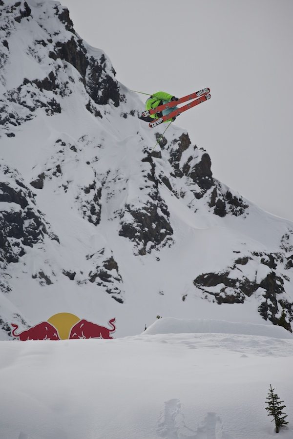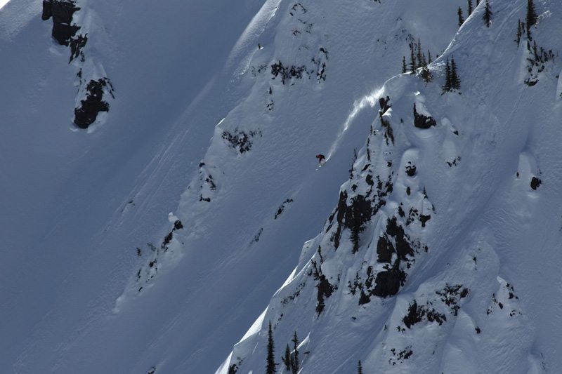 We’re 15 minutes out from the first run of Cold Rush, the 4th incarnate. The big mountain day, on Texas, a 1,200-foot face in the heart of the Selkirks, at the edge of the 10,000-acre catskiing tenure of Retallack Lodge, BC, is so perfect it’s hard to fathom. Just like hot Red Bull girls looking at hairy woodsman poet snowcat drivers in the alpine. Sidelit flutes, huge diving boards, and perfect snow. 11 men and 3 girls, an international amalgamation of some of the world’s best all around skiers are about to begin\ competing in a rider and online judging format at the forefront of action sports marketing machines.